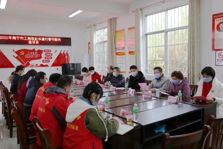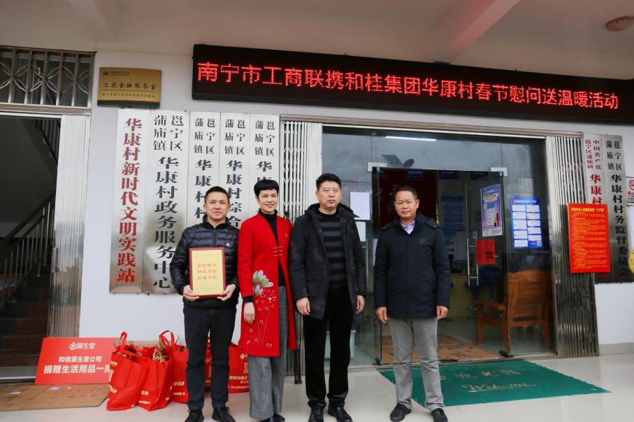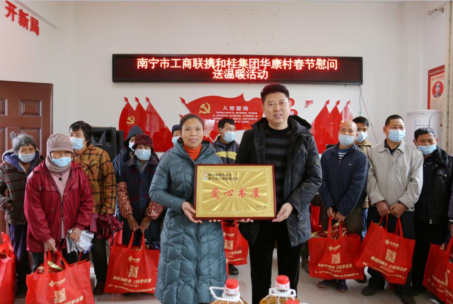 1月17日,南寧市委統(tǒng)戰(zhàn)部副部長、南寧市工商聯(lián)黨組書記李忠南率隊(duì),由南寧市工商業(yè)聯(lián)合會(huì)、和桂集團(tuán)黨支部、南寧梧州商會(huì)的相關(guān)黨員同志組成的慰問組一行,走進(jìn)邕寧區(qū)蒲廟鎮(zhèn)華康村開展走訪慰問活動(dòng)。座談會(huì)上,慰問組一行聽取駐華康村第一書記韋傾人工作匯報(bào)、研究所聯(lián)系村鄉(xiāng)村振興工作;慰問困難群眾,送上春節(jié)慰問品;李忠南書記向華康村小學(xué)贈(zèng)送“愛心書屋”牌匾;華康村委領(lǐng)導(dǎo)向和桂集團(tuán)贈(zèng)送愛心企業(yè)牌匾。