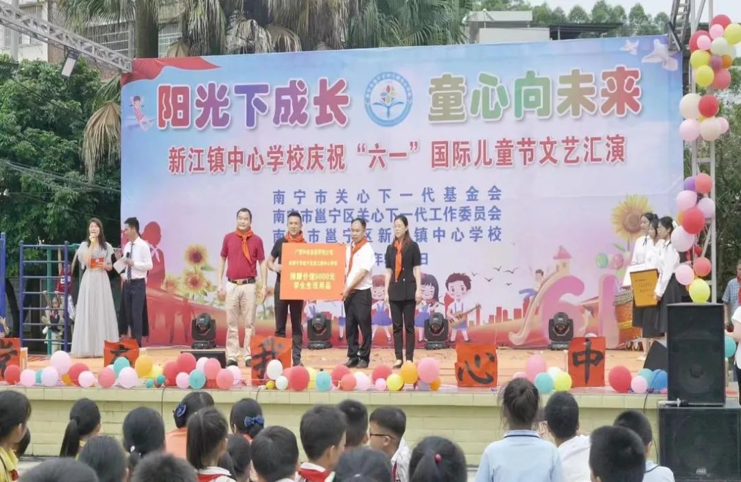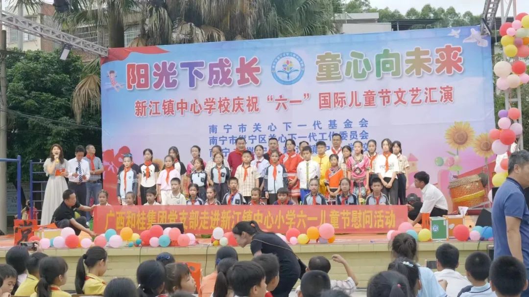 2024年5月30日下午,正值六一國際兒童節(jié)即將到來之際,和桂集團副總裁舒志華同志、和桂黨支部書記周云同志受集團黃偉文總裁的委托,懷著對教育事業(yè)深深的熱愛和對貧困學生的關(guān)懷,在南寧市關(guān)工委主任梁中驊同志、邕寧區(qū)新江鎮(zhèn)黨委宣傳和組織部門的領(lǐng)導同志以及廣西南寧五象新區(qū)(南寧自貿(mào)片區(qū)經(jīng)開區(qū))管委會領(lǐng)導(校友) 廖術(shù)烈同志的帶領(lǐng)下,一起來到了邕寧區(qū)新江鎮(zhèn)中心學校進行了六一兒童節(jié)慰問活動,給師生們送去了節(jié)日的禮物和關(guān)愛。