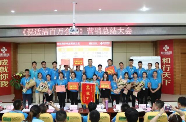 在8月14日的總結(jié)、頒獎會上,和桂集團總裁黃偉文對本次保適潔百萬會戰(zhàn)予以高度評價,并為獲獎團隊、個人進(jìn)行頒獎。第二組輝煌隊,助教汪翠珍,組長蔣麗蓉,組員楊毅獲得個人內(nèi)購單產(chǎn)排名第一,團隊以舍我其誰的氣勢,力壓群雄,勇奪會戰(zhàn)團隊冠軍。