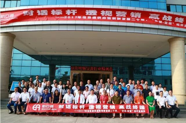 2017年9月21日-9月22日,為期2天的“對(duì)話標(biāo)桿 透視營(yíng)銷 贏戰(zhàn)終端-2017年怡亞通供應(yīng)鏈創(chuàng)新發(fā)展二十年,‘分銷+營(yíng)銷’標(biāo)桿直通車”全國(guó)首站跨區(qū)域標(biāo)桿游學(xué)在公司順利開展。來(lái)自怡亞通全國(guó)10個(gè)省區(qū)的日化合資公司總經(jīng)理及銷售負(fù)責(zé)人、上游廠商等共計(jì)61人參加。本次交流活動(dòng)由怡亞通供應(yīng)鏈大學(xué)主辦、廣西科桂貿(mào)易有限責(zé)任公司承辦,并得到怡亞通品牌服務(wù)平臺(tái)、380分銷平臺(tái)運(yùn)營(yíng)中心與廣西省區(qū)的大力支持。