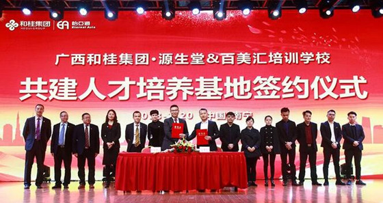 本次感恩家宴特設(shè)與南寧百美匯美容美發(fā)彩妝職業(yè)培訓(xùn)學(xué)校 “共建人才培養(yǎng)基地”合作簽約儀式,此次簽約標(biāo)志著雙方建立了長期穩(wěn)定的戰(zhàn)略合作關(guān)系。據(jù)悉,集團公司將與該校共建“和桂集團人才培養(yǎng)基地”、“源生堂天然養(yǎng)發(fā)共建創(chuàng)業(yè)班”,委托該校進行養(yǎng)彩妝護膚及頭發(fā)養(yǎng)護等人才定向培養(yǎng)與專業(yè)技術(shù)輸出。百美匯學(xué)?,F(xiàn)開設(shè)美發(fā)、美容、彩妝、美甲、紋繡等專業(yè),上百個班級,全部是社會熱門專業(yè),滿足不同層次的培訓(xùn)需求。