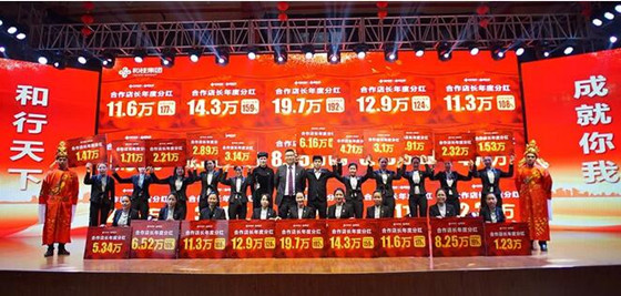 黃總與舒總為源生堂合作店長頒發(fā)2017年年度百萬分紅