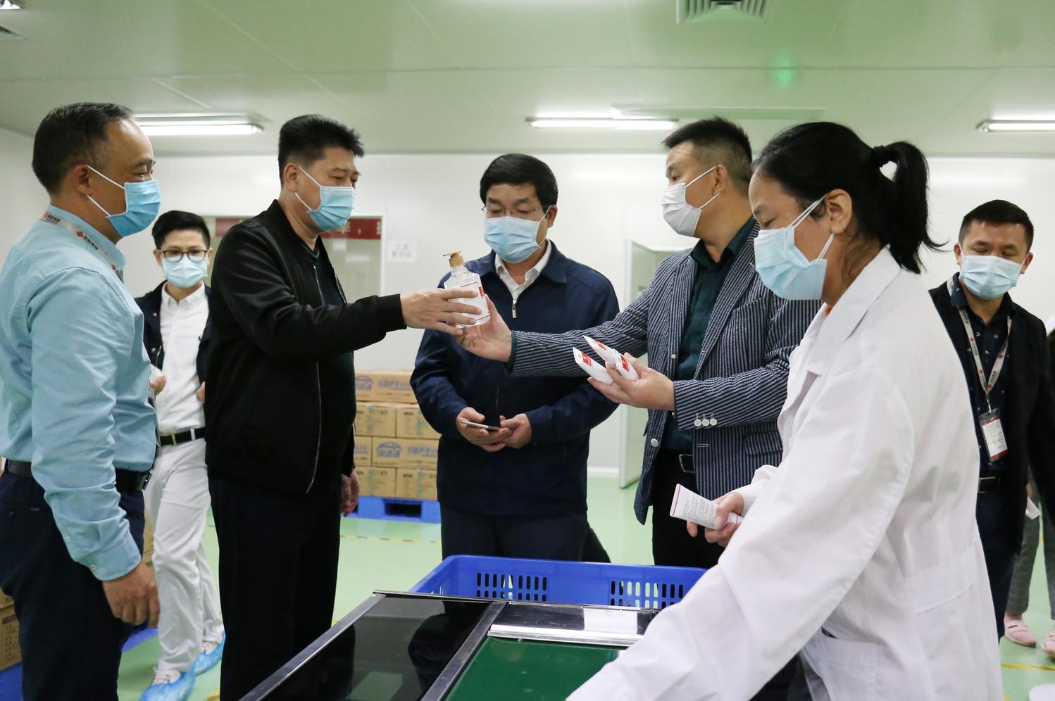 趙紅明部長一行在黃總的帶領(lǐng)下,分別走進和桂集團各分子公司辦公區(qū)、集團展廳、生產(chǎn)車間等進行調(diào)研。在生產(chǎn)車間,趙紅明部長向黃總詳細了解了企業(yè)殺菌消毒產(chǎn)品的生產(chǎn)情況。黃總介紹,和桂集團作為國家高新技術(shù)企業(yè)、國家認證的消毒產(chǎn)品生產(chǎn)企業(yè)、廣西抗疫骨干企業(yè),在疫情不斷蔓延的形勢下,公司克服人力與物資不足等困難,積極投入防疫應急用品的生產(chǎn)中,推出了免洗手消毒凝膠、抑菌護手洗手液、除菌洗衣液六款殺菌消毒產(chǎn)品,得到消費者的好評,供不應求。在抗疫物資緊缺的情況下,公司急一線所急,將生產(chǎn)的產(chǎn)品優(yōu)先捐贈給南寧市第二人民醫(yī)院等抗疫一線,緩解抗疫一線所需。