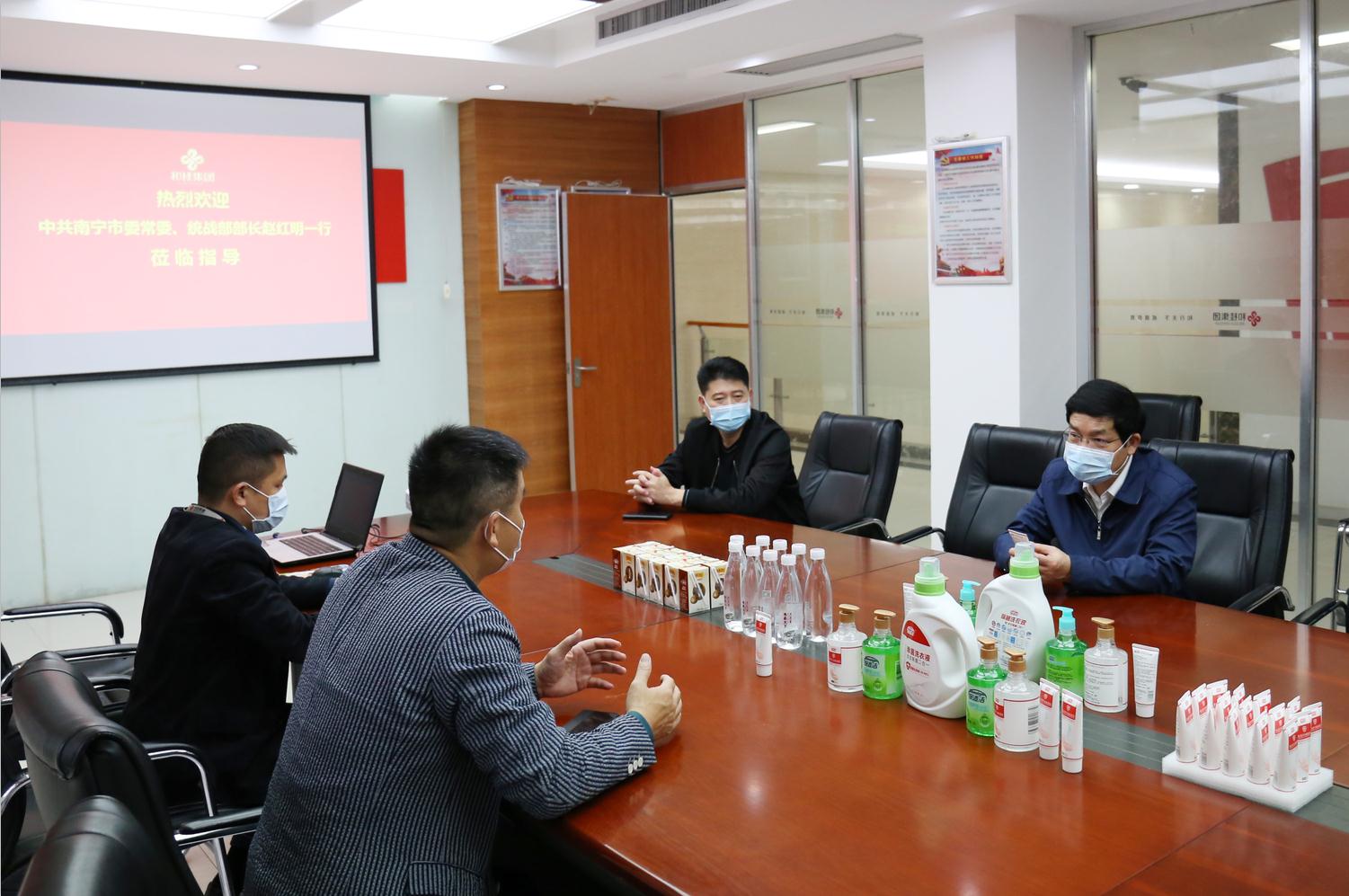 2月28日,中共南寧市委常委、統(tǒng)戰(zhàn)部部長趙紅明率隊,在南寧市委統(tǒng)戰(zhàn)部副部長、市工商聯(lián)黨組書記李忠南的陪同下,蒞臨和桂集團開展疫情防控和復工復產(chǎn)調(diào)研工作,并贈送復工口罩。受到和桂集團總裁黃偉文的熱情接待,雙方就疫情防控和復工復產(chǎn)等事宜舉行會談,并達成一致意見。