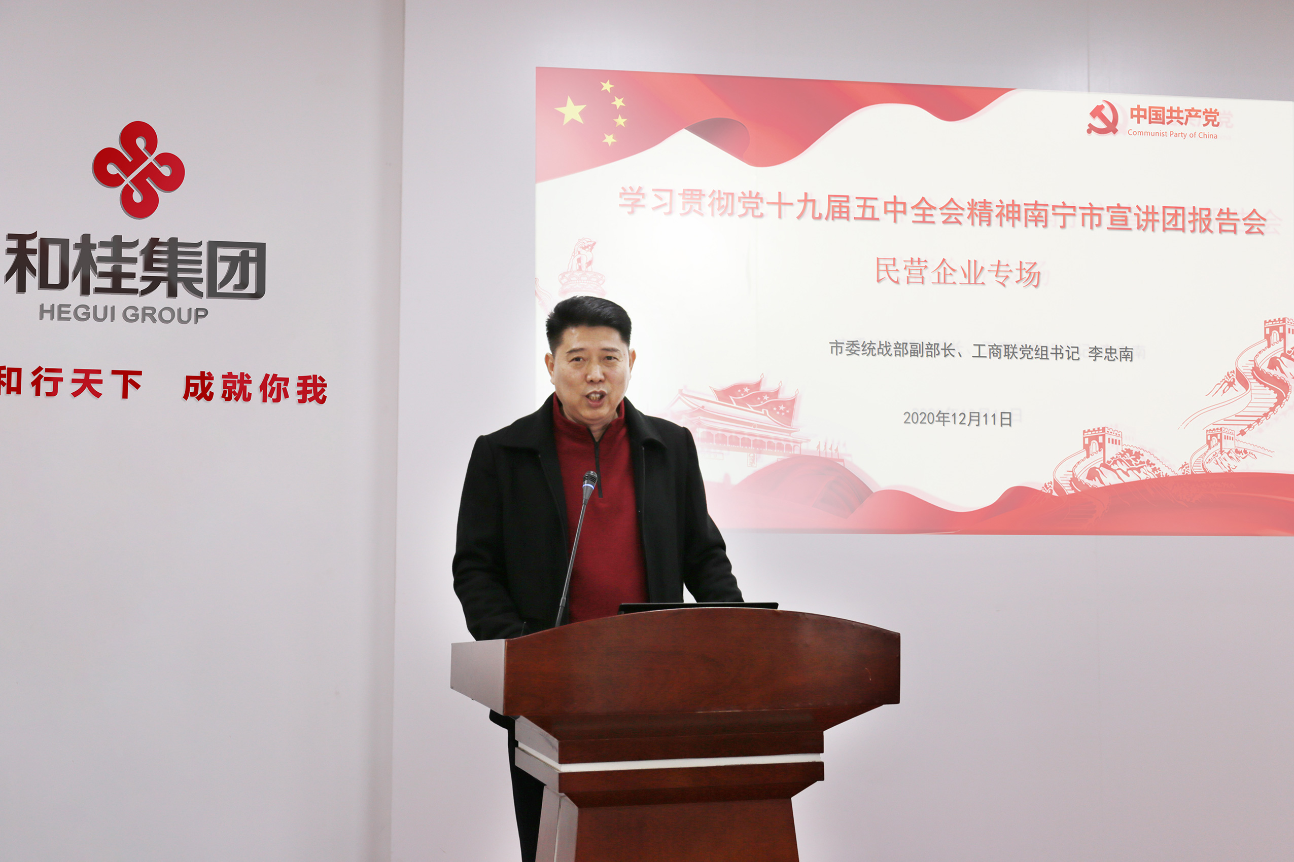 南寧市委統(tǒng)戰(zhàn)部副部長、市工商聯(lián)黨組書記李忠南宣講黨的十九屆五中全會精神