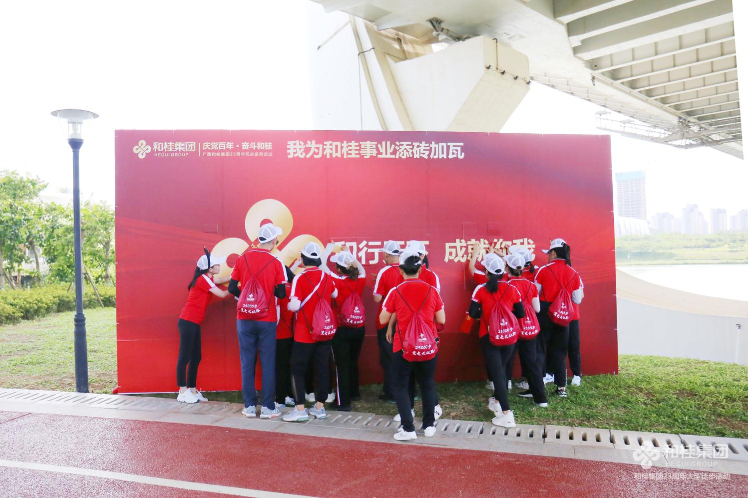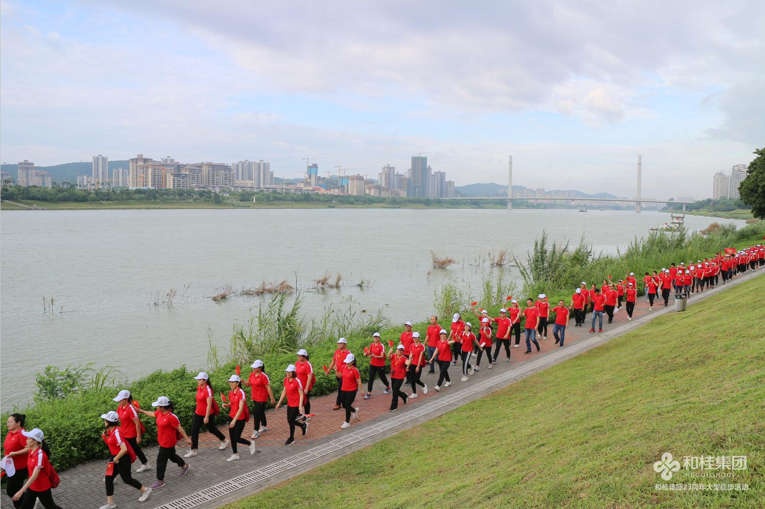 在建黨100周年之際,和桂集團喜迎創(chuàng)立23周年司慶。6月26日,“25000步·重走長征路”2021和桂集團23周年司慶徒步活動盛大舉行。和桂集團董事長黃偉文,攜300名和桂家人集結邕江河畔,用一場酣暢淋漓的25000步徒步之旅,傳承長征精神,凝聚奮進力量。