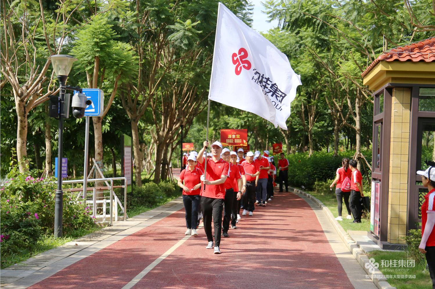一個人走得快,一群人走得遠,家人們精神抖擻,昂首闊步,邕江河畔縈繞著和桂家人高亢的歌聲,“中國紅”與“和桂紅”交相輝映,匯聚成邕江河畔最亮麗的風景線。25000步新長征路,和桂家人,相互鼓勵、彼此扶持,有的人盡管體力透支,有的人盡管被陽光曬得通紅,汗流浹背,但依舊拼盡全力、咬牙堅持,唯一不曾改變的是不斷向前邁進的步伐,是對建黨百年奮斗精神的傳承,是努力打造百年企業(yè)的信念。