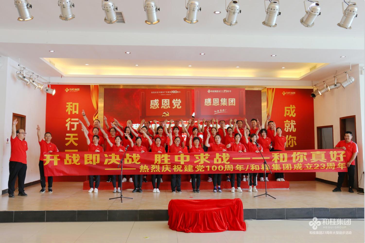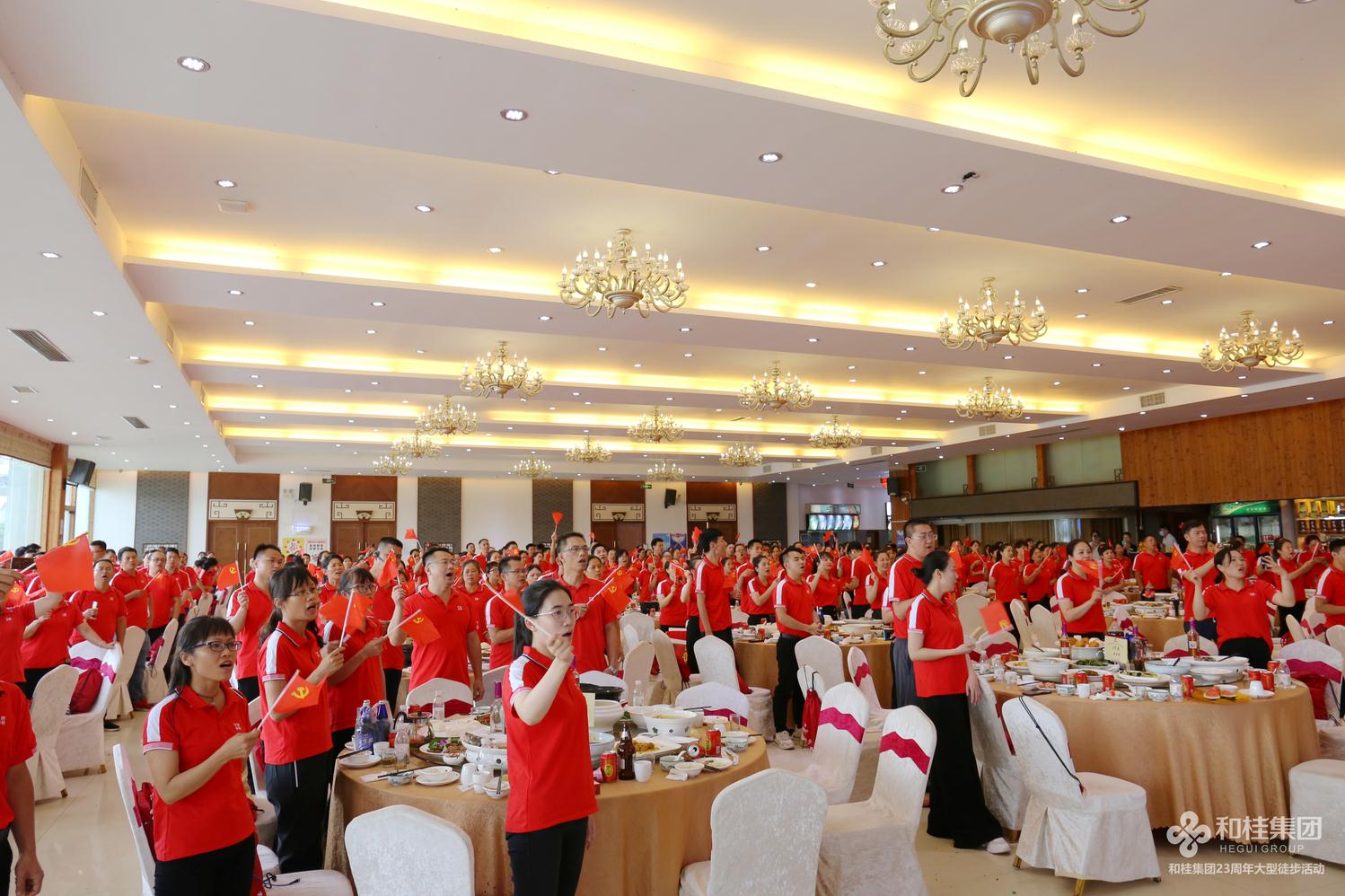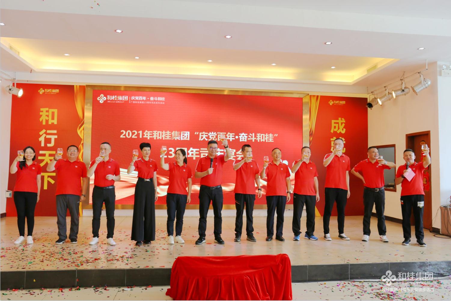 司慶活動在一首高亢有力的大合唱《團結就是力量》歌聲中圓滿結束,和桂集團23年奮斗歷程始終如一,團結一心,眾志成城,一步一個腳印創(chuàng)造一個個奇跡。奮進新起點,踏上新征程,和桂集團將繼續(xù)秉承“誠信、創(chuàng)新、感恩、共贏”的企業(yè)價值觀,堅持黨旗領航,實干興企,以慶黨百年為起點,齊心奮斗,打造百年和桂砥礪前行!
