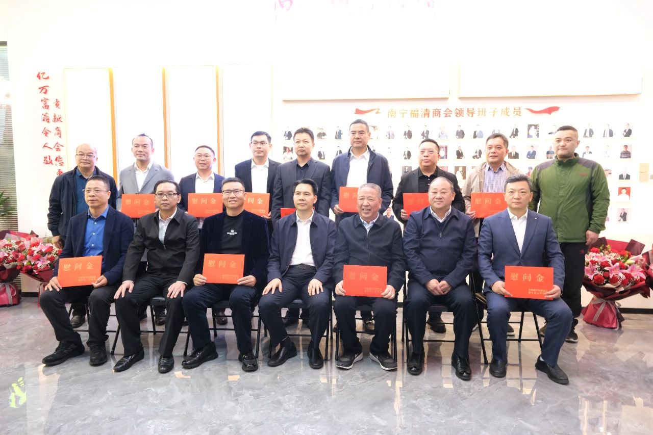最后,韋江副市長代表南寧市委、市政府向10家商會(huì)、企業(yè)以及6名優(yōu)秀企業(yè)家發(fā)放了慰問金,并與各位代表們進(jìn)行合影留念。